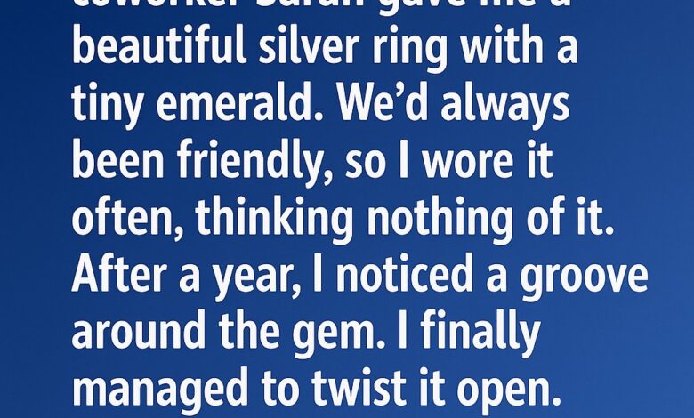 A year ago, my Secret Santa coworker Sarah gifted me a silver ring with a tiny emerald. We were friendly, so I wore it often. After a year, I noticed a groove and twisted it open—revealing a hidden note: “Keep going.”