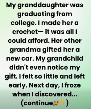My granddaughter was graduating from college. I made her a crochet; it was all I could afford. Her other grandma gifted her a brand-new car. My granddaughter didn’t even notice my gift. I felt so small and left early.