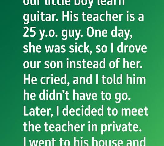 My wife insisted our son learn guitar from a 25-year-old teacher. When she fell ill, I drove him instead. He cried, so I said he didn’t have to go. Curious, I visited the teacher alone.