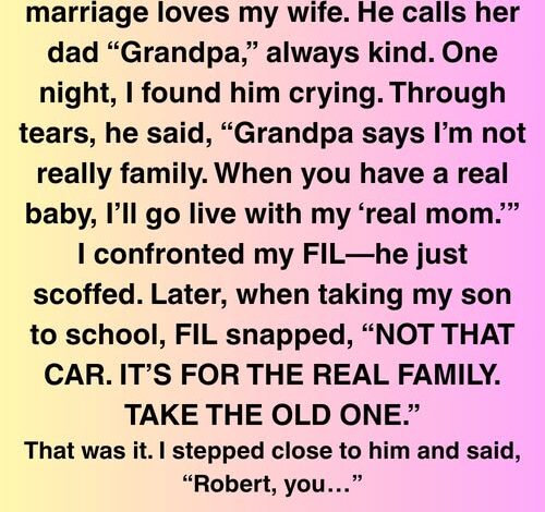 One night, I found him crying. He whispered, “Grandpa says I’m not real family. He said when you and Mom have a real baby, I’ll go live with my ‘real mom.’” His pain was heartbreaking—no child should feel unwanted.