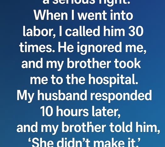 My husband and I fought bitterly. In labor, I called him 30 times; he ignored me. My brother rushed me to the hospital and texted him, “She didn’t make it.”