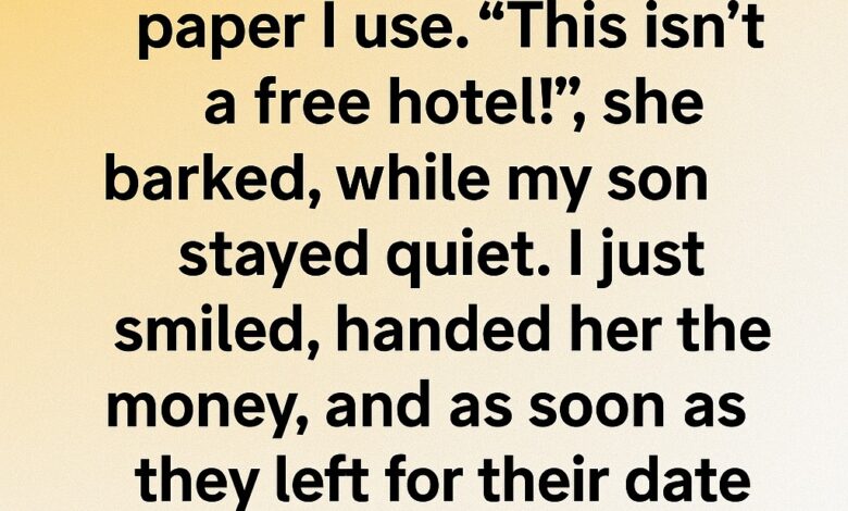 My DIL demands I pay for toilet paper whenever I babysit. “This isn’t a free hotel!” she snapped, while my son stayed silent. I smiled, handed her the cash, and waited.