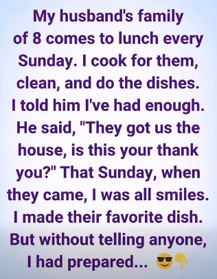 Every week, my husband’s family of eight came over for lunch. I cooked, cleaned, and smiled through the chaos, trying to keep the peace while managing everything.