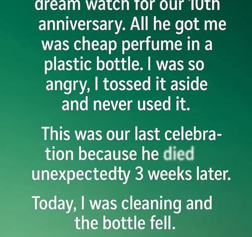 I got my husband his dream watch for our 10th anniversary. All he got me was cheap perfume in a plastic bottle. I was so angry, I tossed it aside and never used it. This was our last celebration because he died unexpectedly three weeks later. The pain of losing him was unbearable—I replayed that night over and over, angry not at the gift anymore, but at myself for letting disappointment overshadow love. I missed his voice, his laugh, even the way he reminded me to drink water when I got too busy.