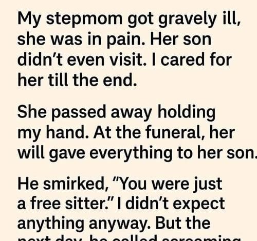 In it, she thanked me for being patient and gentle with her during her weakest moments. She wrote that she couldn’t change her will without creating more family conflict, but she wanted me to know that my kindness meant more than anything she could have left behind. I had been her comfort. Her steady presence. Her peace.