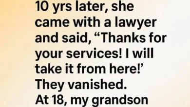 There, waiting in the morning light, was a neatly wrapped package. On top lay a small handwritten note—my name written carefully in my grandson’s familiar scrawl.
