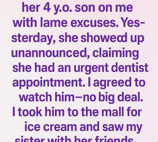 My sister has a habit of dropping off her 4-year-old son on me with flimsy excuses, but yesterday took the cake. She showed up unannounced, claiming she had an “urgent dentist appointment.” I didn’t question it—I love my nephew—so I took him to the mall for ice cream.