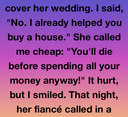 She snapped back, “You’ll die before spending all your money anyway!”