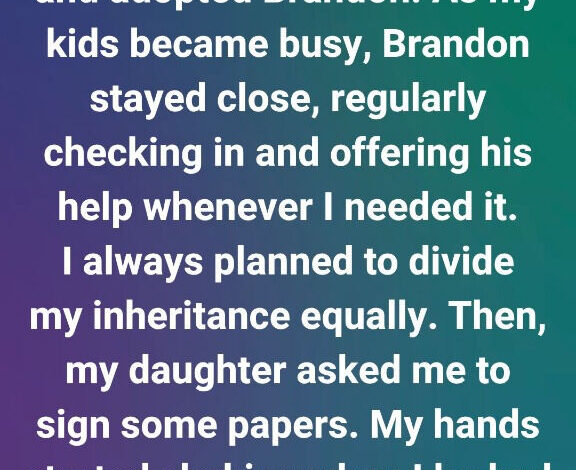 I’m 78 years old. I raised my three biological children alone, and years later, I adopted Brandon. As they grew older, my biological children drifted into their own busy lives — but Brandon never did. He checked on me, helped me, and made sure I was never alone. I always planned to divide my estate equally among all four of my children, because in my heart, there was no difference between them.