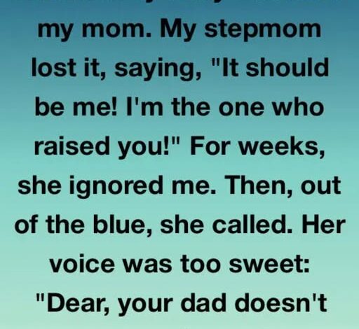 I felt something click into place—not anger, but clarity. When I called my dad, he sighed and told me the truth. He hadn’t changed his will at all. She had overheard part of a conversation with his lawyer and twisted it. He admitted she felt threatened anytime I honored my mother.