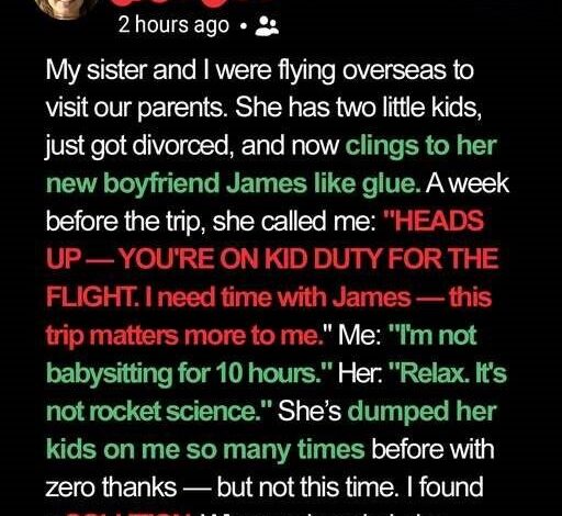 She said it like it was already decided. Ten hours. Two kids. So she could relax with her new boyfriend. When I said I wasn’t comfortable babysitting mid-air, she snapped and hung up.