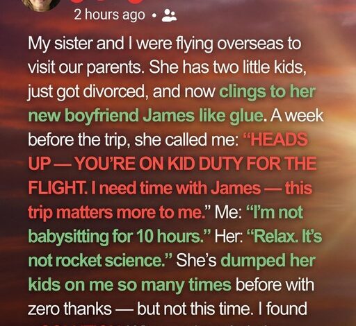 But days earlier, she had casually informed me that I would be on kid duty for the entire flight so she could enjoy uninterrupted time with her new partner. It wasn’t framed as a request. It was an expectation. I loved my niece and nephew, but something inside me grew heavy with a familiar feeling—being assigned responsibility simply because I always had been.