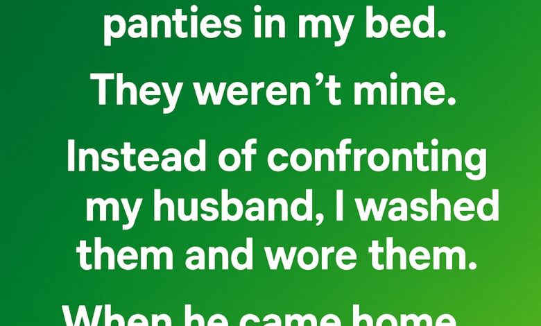 Finding unfamiliar underwear in my laundry, my heart sank, suspecting my husband’s infidelity. Instead of confronting him, I washed and folded them, placing them in my drawer. At dinner, I acted normal, noting his distracted phone-checking and forced smiles. That night, wearing the underwear, I saw his shock turn to laughter.