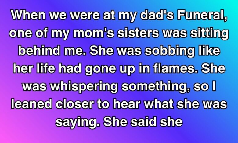 At my dad’s funeral, my aunt Rina sobbed, whispering, “I should’ve told her the truth.” My dad, the family anchor, died of a heart attack, leaving my mom distant and me to speak at the service. Rina’s muttering stuck with me. Weeks later, my mom called: Rina confessed she’d dated my dad secretly before he met my mom. Scared he’d never propose, Rina lied about a pregnancy to push him away. He then fell for my mom, but wrote Rina a letter