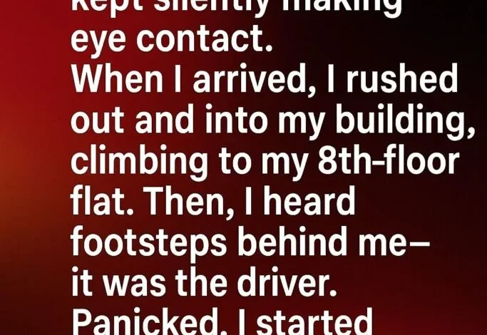 I was alone in a taxi at 3 a.m., the city quiet under orange streetlights. The driver kept glancing at me through the mirror, his silence unsettling. When we reached my building, I paid quickly and hurried out, my heart racing as I climbed toward my 8th-floor flat.