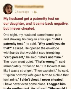 I told him it had to be wrong. But he looked at me like a stranger. “Explain how my wife gave birth to a child that isn’t mine,” he demanded.