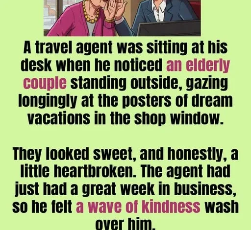 A travel agent noticed an elderly couple outside his shop, gazing longingly at dream vacation posters. They looked sweet, a little heartbroken. Feeling generous after a good week, he rushed out.
