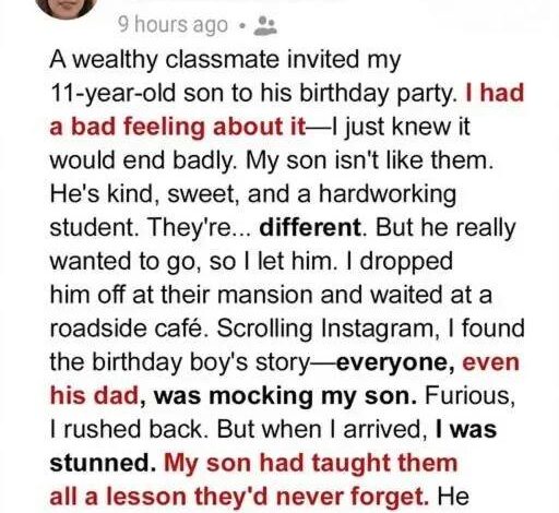 My son Jake thought he’d finally been accepted when he got invited to a rich kid’s birthday party. Instead, he walked straight into more bullying. What he did next? The school still talks about it.