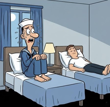 A tired Marine arrived in a town where every hotel was full. The last manager said, “I only have a double room with a Navy guy — but he snores so loud people complain.”