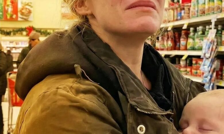 I’m Laura, forty years old, a grocery store cashier who traded childhood dreams for steady paychecks and aching feet. One night, ten minutes before closing, a young mother came through my lane with a baby asleep on her chest. Her cart held only essentials: bread, eggs, milk, and a single can of formula.