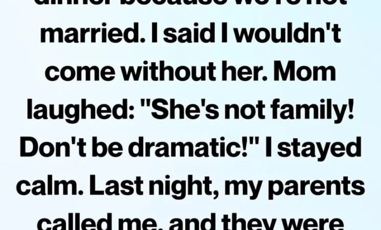 I told her calmly that if my girlfriend wasn’t welcome, neither was I. She laughed and said, “She’s not family. Don’t be dramatic.”