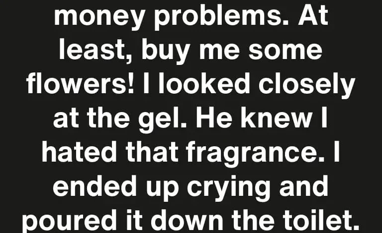 I looked closely at the gel, and he knew that I hated that fragrance. I ended up crying and poured the gel down the toilet.