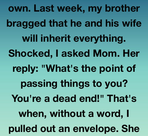 Unable to have children, I faced heartbreak when my mom called me a “dead end,” implying my brother and his wife, with kids, would inherit everything. Stung, I revealed a deed to a cottage I’d bought myself in Fairmere. Mom was stunned but offered no congratulations, and I left her house for good.