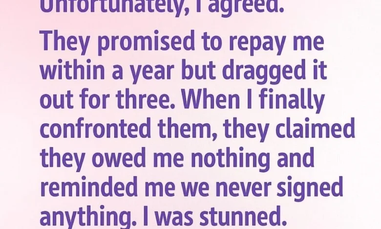 Months turned into years. Every time I mentioned repayment, they dodged the conversation or claimed they were “working on it.” When I finally asked for honesty, they denied everything—and reminded me there was no written agreement.