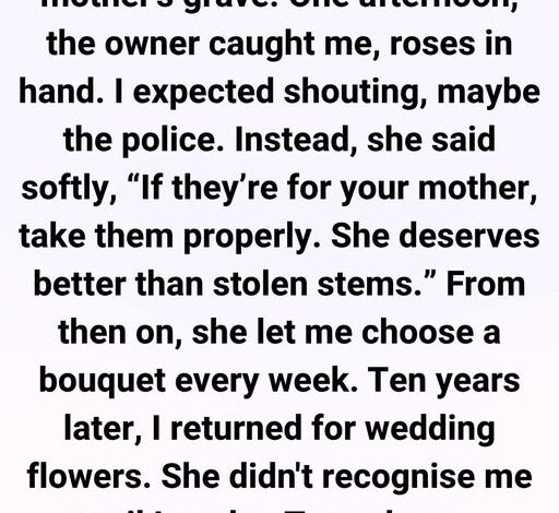 When I was twelve, I used to steal flowers from a small shop to place on my mother’s grave. She had died the year before, and I had no money—only the need to feel close to her. One afternoon, the shop owner caught me with roses in my hands. I expected anger.