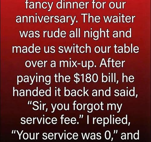 When the bill arrived—$180—I paid without hesitation, eager to leave gracefully. But the waiter returned and bluntly told me I hadn’t included his service fee. It wasn’t the request that bothered me; it was the entitlement behind it. Calmly, I told him his service hadn’t earned one, and we walked out.