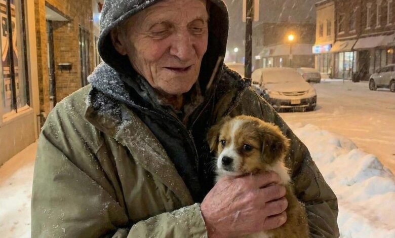 One cold afternoon, Lucy and I were loading groceries when she tugged my sleeve. At the edge of the parking lot sat an older man in a worn coat, cradling a small, trembling dog. When he approached, he stopped a few feet away.