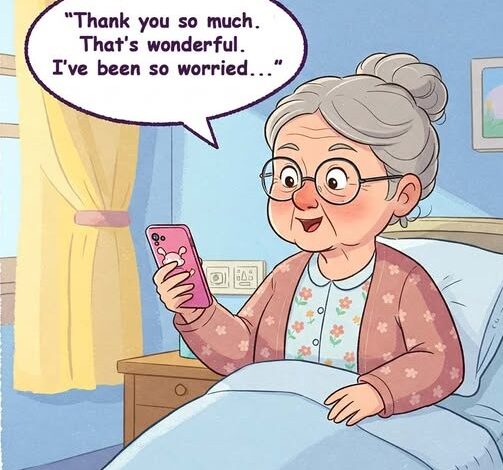 After checking, the operator comes back with great news: Norma’s blood pressure is perfect, tests are normal, and she’ll be discharged tomorrow.