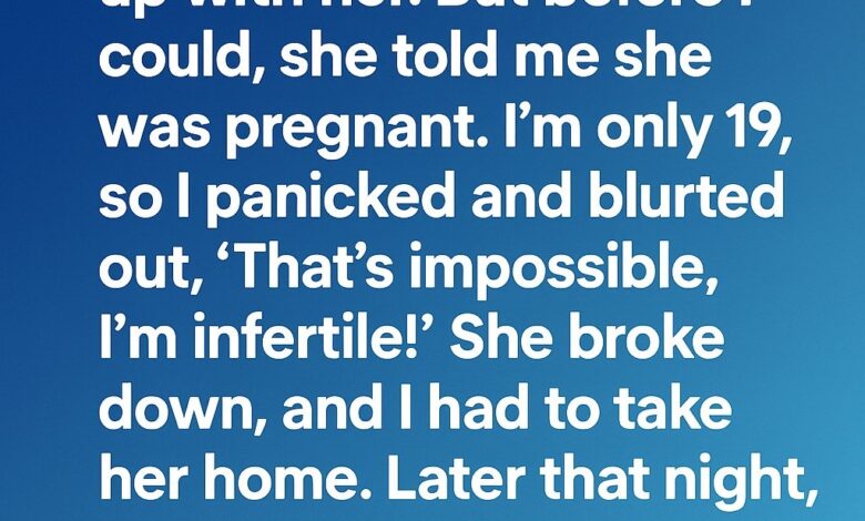 Before I could speak, she said she was pregnant. I’m 19, and the words hit like a truck. Panicked, I blurted, “That’s impossible — I can’t have children.”