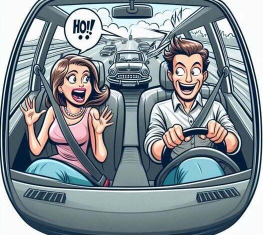 Just before they slam into the wall at 65mph, the husband turns to her and smiles. “The airbag!”