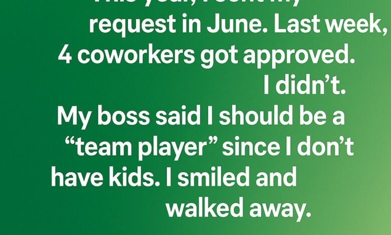 When he called me into his office, he asked why I’d made such a “sudden” decision. I reminded him my holiday request had been sitting in his inbox for six months. I explained that fairness matters, and denying time off based on parental status was a pattern I could no longer accept.