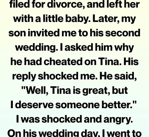 Months later, my son called to say he was filing for divorce. He had found someone “better.” Tina was left alone with a one-year-old, struggling to survive in a tiny rented room. Then came the final blow—my son invited us to his wedding.
