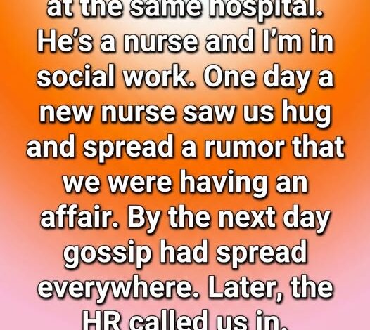 One evening after a long shift, a new nurse saw us embrace and misunderstood. By the next morning, whispers followed us through the corridors. Conversations stopped when we entered rooms, and coworkers who had known my father for years suddenly seemed unsure. A simple hug had turned into a rumor.