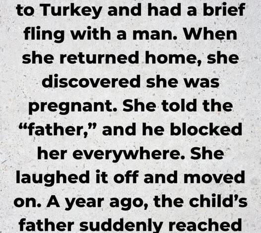 A year ago, the child’s father suddenly reached out. It turned out he hadn’t forgotten her at all—he’d been watching from a distance. After blocking her, he returned to his life in Turkey, married someone else, and tried to bury what happened. But secrets have a way of resurfacing, especially when they grow into questions.