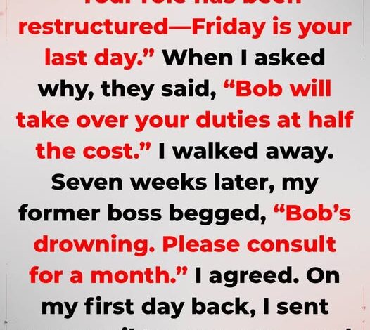 Seven weeks later, Mark’s former boss called in panic. Bob was overwhelmed. They begged Mark to return as a consultant for a month.