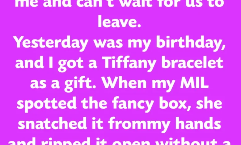 On her birthday, she received a Tiffany bracelet from her own mother. But when her MIL saw the signature box, she snatched it away and opened it without permission. Furious, she assumed the expensive gift was from her son and shouted, “How dare he spend money like that while living in MY house? I have the right to this jewelry, not you!”