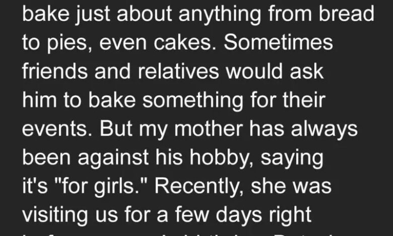 But my mother, Elizabeth, who was staying with us, didn’t approve. She insisted baking was “for girls” and that real boys should focus on sports. Despite my warnings, she kept criticizing him.