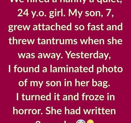 Around the same time, we hired a quiet 24-year-old nanny. My seven-year-old son became deeply attached to her, throwing tantrums whenever she wasn’t around. Yesterday, I found a laminated photo of him in her bag. At first, it seemed sweet.
