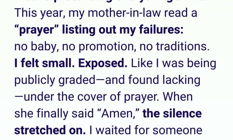 During Christmas Prayer, My Mother-in-Law Listed All My “Failures” — My Husband’s Reaction Shocked the Entire Family