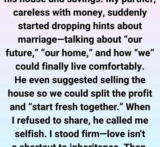 That’s when things turned. He called me selfish, said a real partner would share, and even claimed my dad would’ve wanted me to use it for “our life.”