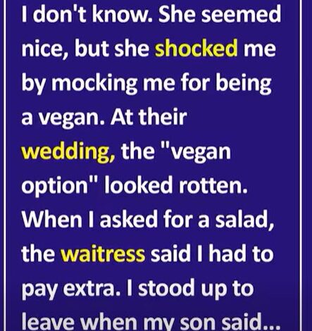 I still attended the wedding for my son — he means everything to me. At the reception, there was no assigned seating, so I chose a table labeled for a “vegan option.” But when the food arrived, it looked spoiled. I asked for a salad, only to be told I’d have to pay extra because only one vegetarian meal had been arranged.