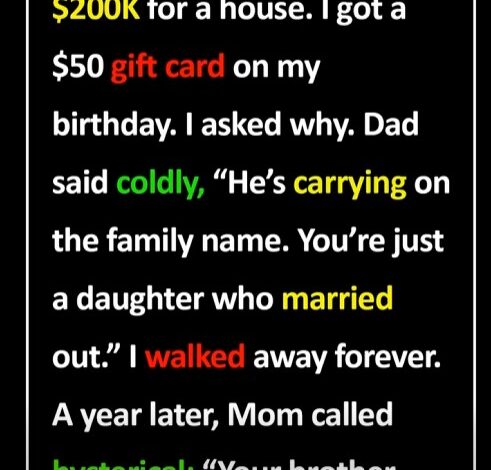 My parents gave my brother $200K for a house. I got a $50 gift card. When I asked why, my dad said, “He carries the family name. You’re just a daughter who married out.” I walked away.