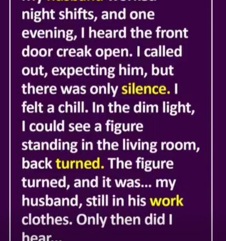 My husband worked night shifts, and one evening, I heard the front door creak open. I called out, expecting him, but there was only silence. A chill crawled up my spine.