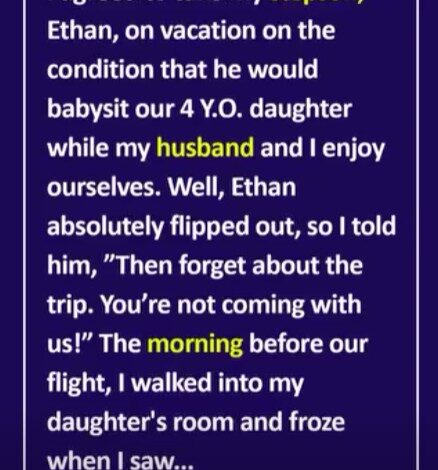 When I agreed to take my stepson, Ethan, on vacation, I made one condition: he would help babysit our 4-year-old daughter so my husband and I could finally relax. It didn’t seem like too much to ask. But Ethan didn’t see it that way.