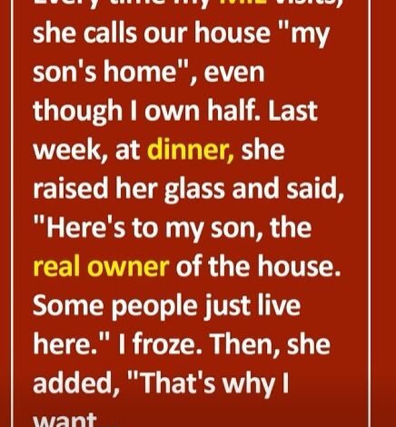 Every time my mother-in-law visits, she calls our house “my son’s home” as if I’m just some guest living there. Never mind the fact that my name is on the deed and I pay half the mortgage. I’ve bitten my tongue for years to keep the peace, but last week she crossed a line I can’t ignore.