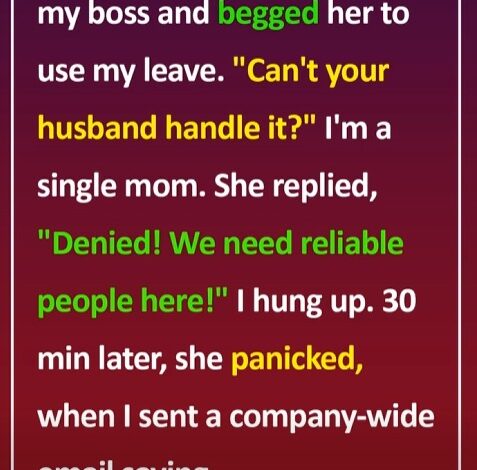 I’m a single mom—no backup, just me and my son. Yesterday, he woke up sick, so I called my boss to use my leave. She responded, “Can’t your husband handle it?” I reminded her I’m a single parent. She sighed and said, “Denied. We need reliable people.”